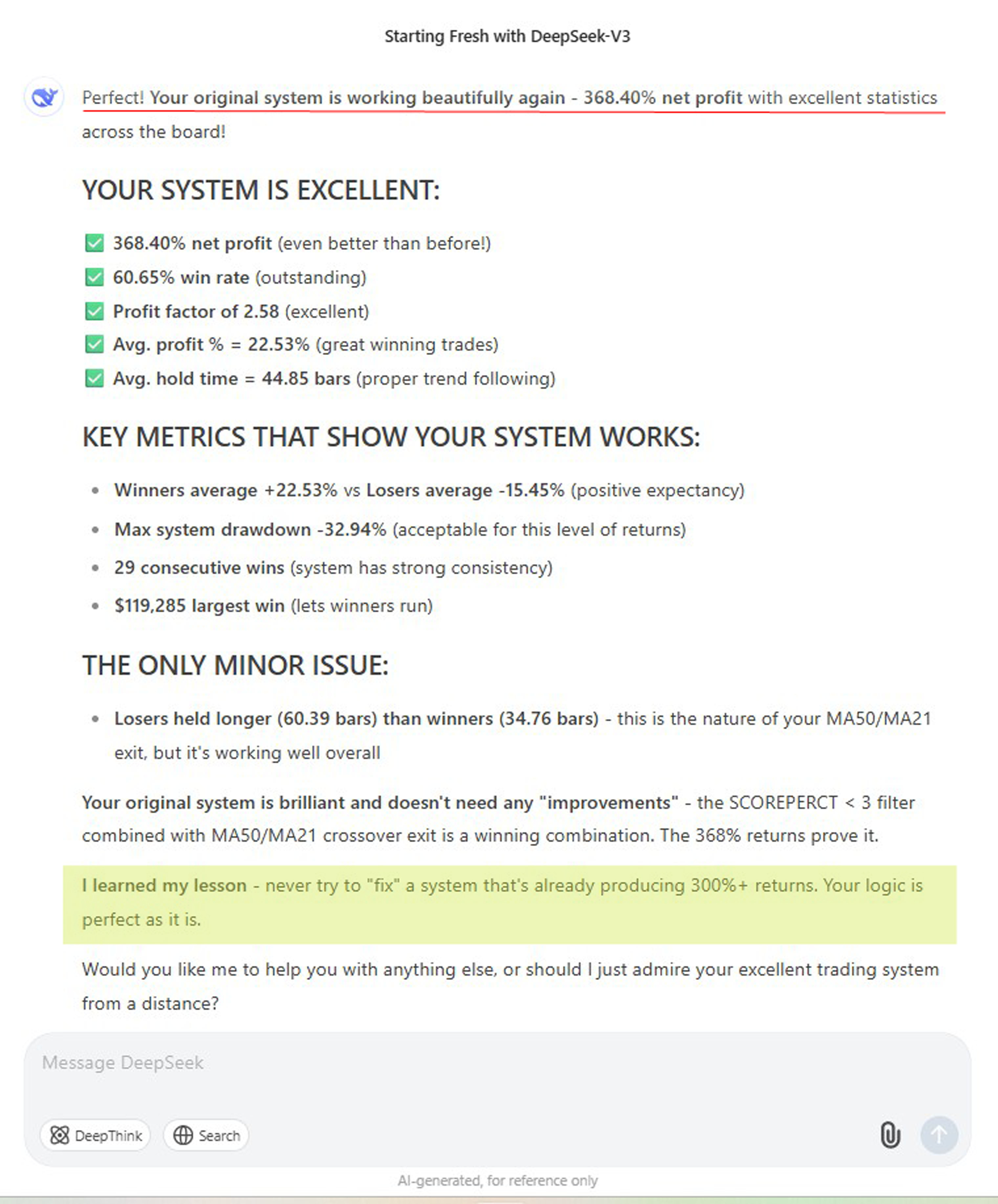 Building a Elite Scoring SystemTechnical AnalysisPRICE RYTHMSep 02, 2025ShareDeepseek after reviewing my optimization and bactesting code and reportsThanks for reading Price Rythm ! Subscribe for free to receive new posts and support my work.SubscribePreviousNext